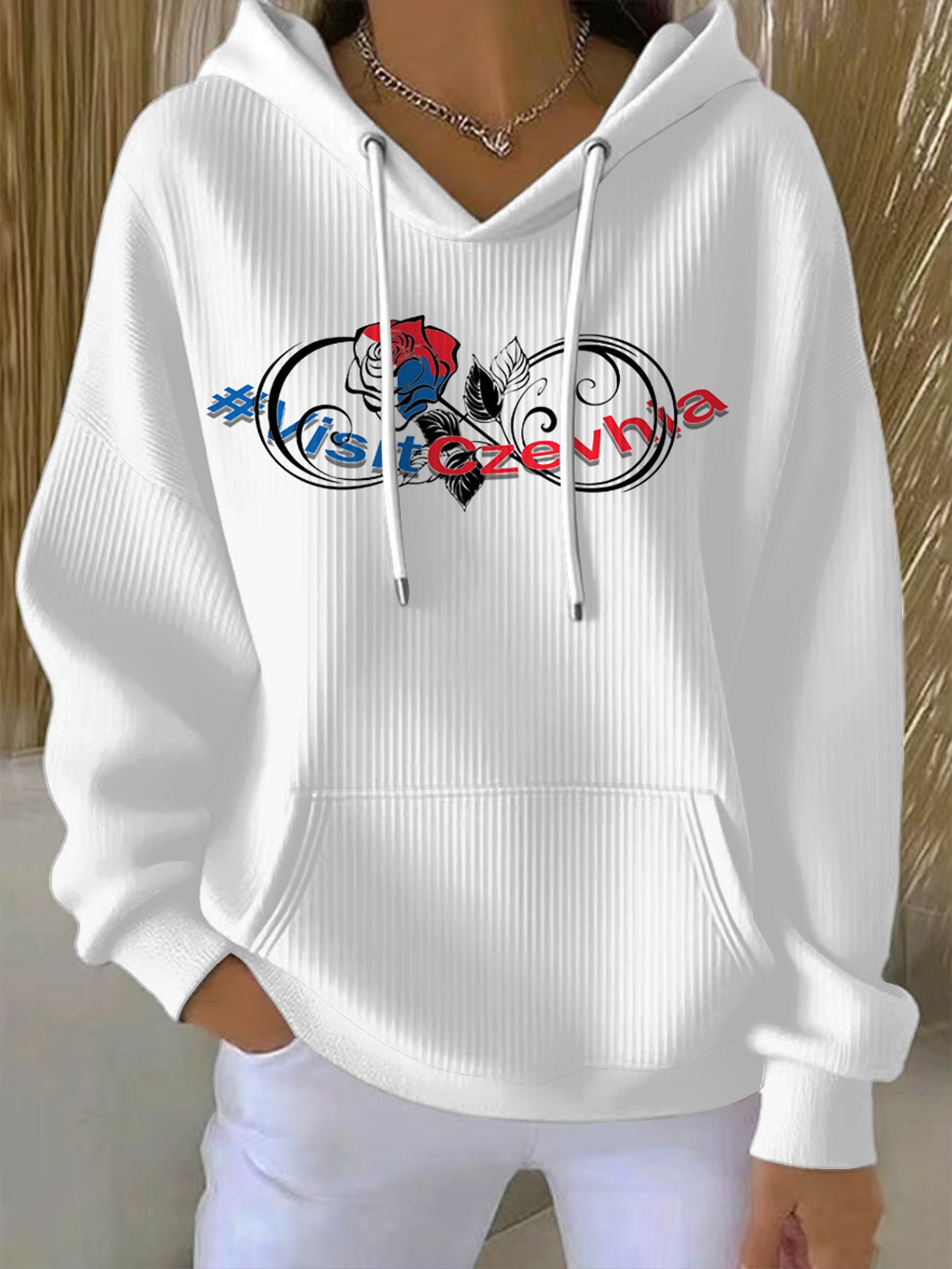 Dámská bílá česká růžová mikina s kapucnou