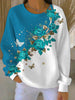 Dámská modrá a bílá mikina s tyrkysovou růží a motýlkem