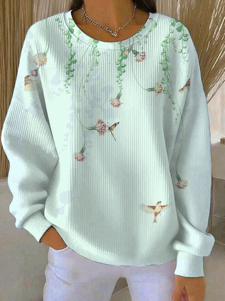 Dámská světle zelená mikina s visící květinový a vtáčí motiv
