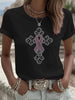 Dámské černé tričko v evropském stylu spárované s očima přitažlivým třpytivým křížkem a páskou prevence rakoviny prsu ukazuje elegantní pocit v každodenním oblečení