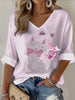Dámské diamantové kočky a stuha světle růžové denní v-neck s dlouhými rukávy