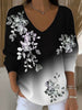 Dámské elegantní černobílý gradient vneck svetr s jemnou květinovou výšivkou