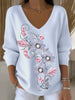 Dámské elegantní květinové vyšívání svetr s v-neck