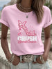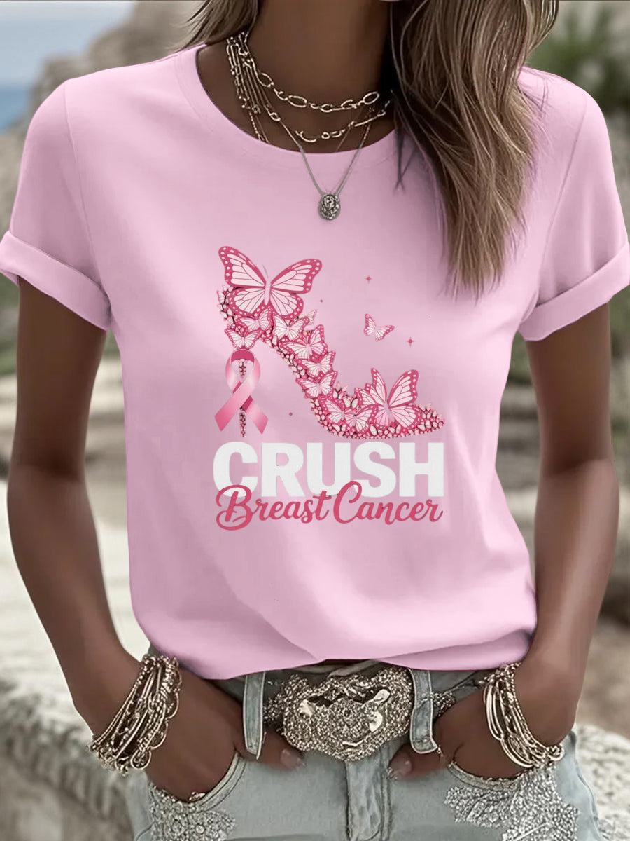 Dámské evropské růžové tričko zdobené sexy boty s vysokým podpatkem květiny a prsní rakovina prevence pásky tisk
