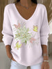 Dámské evropské styl světlé růžové v-neck svetr s nádherným motýlem a květinovou výšivkou módní a pohodlné vhodné pro každodenní nošení