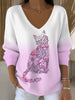 Dámské krásné růžovébílé gradient vneck svetr s květinovou kočku siluetu