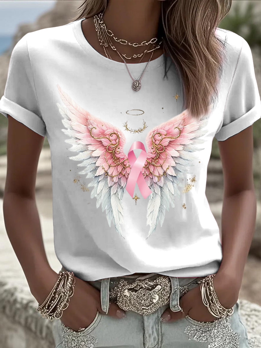 Dámské křídlo a stuha rakoviny prsu téma bílé neformální kulaté krk krátký rukáv