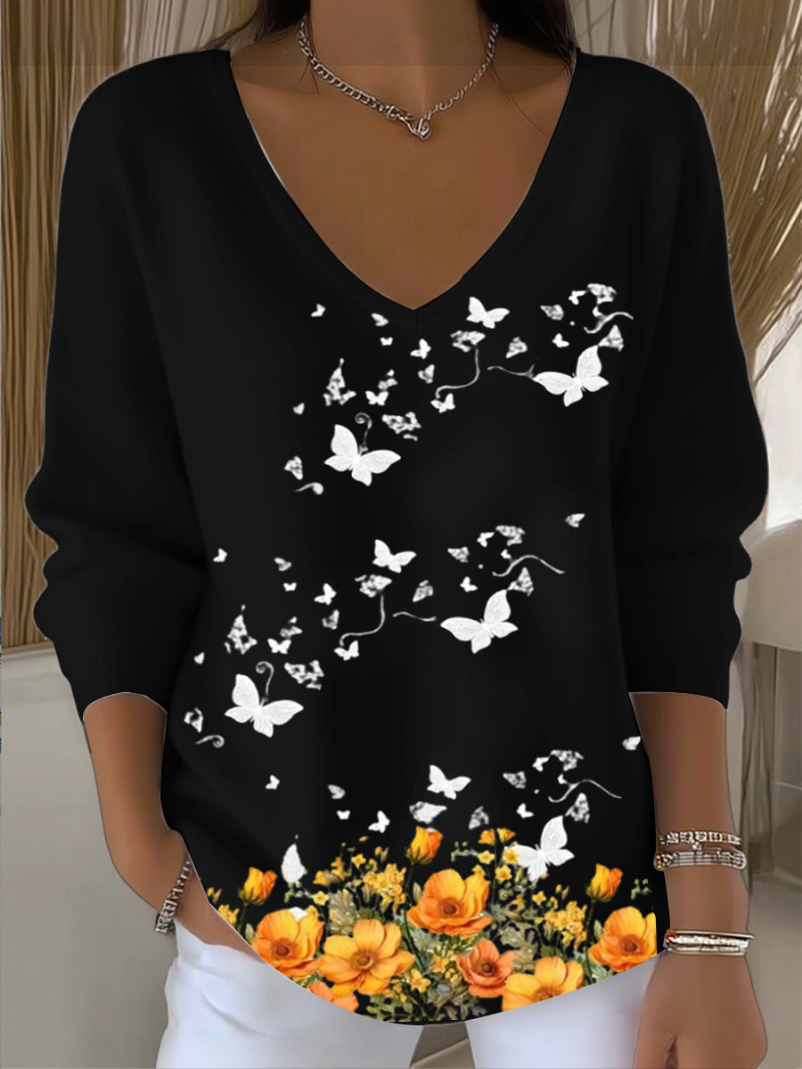 Dámské okouzlující černý motýl & květ vkrk svetr