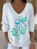 Dámské okouzlující světle modrý svetr s v krku s krásnou modrou ranní slávou výšivkou
