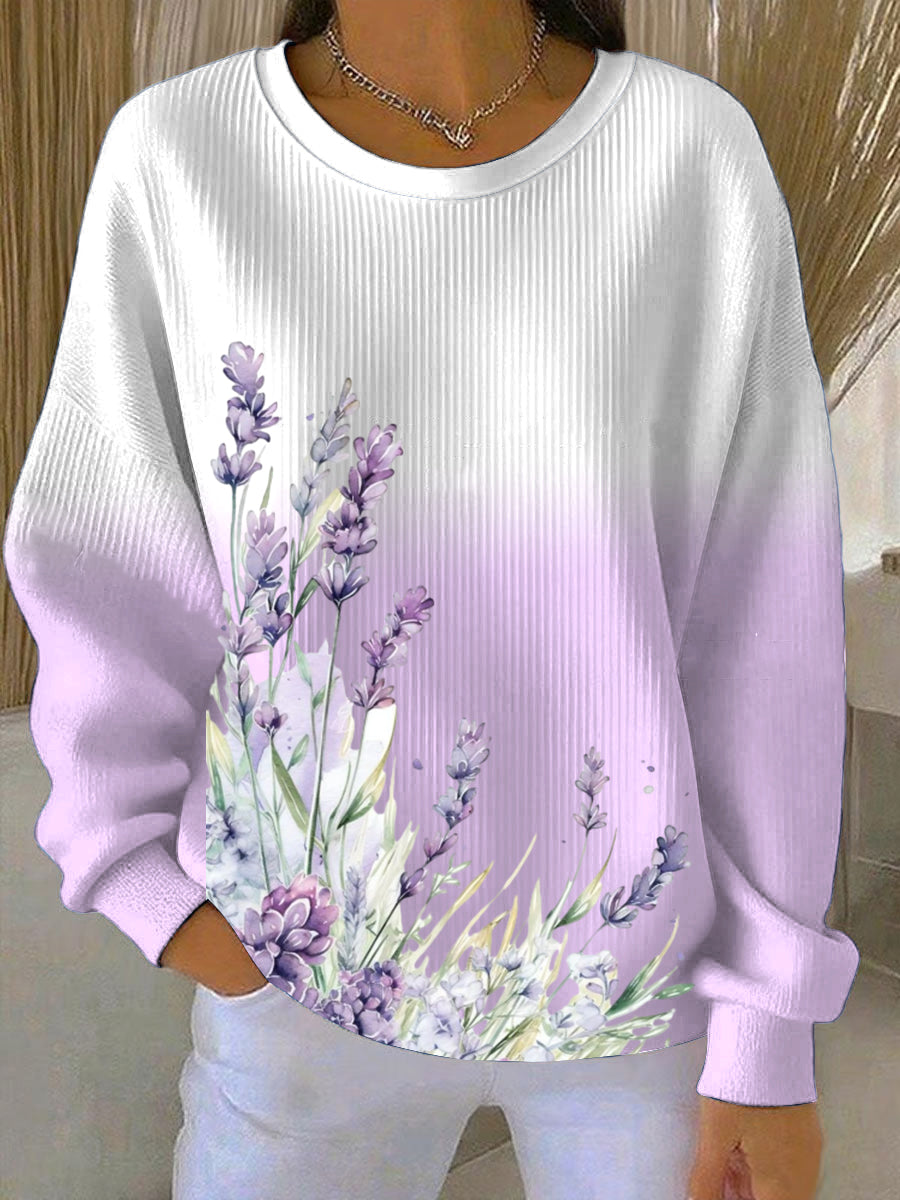 Dámské ombre fialová mikina s levandulovou tištěnou