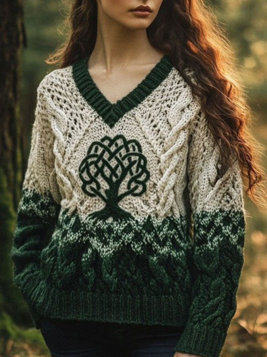 Dámské retro bohémské květinové pohodlí pletený svetr