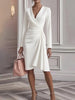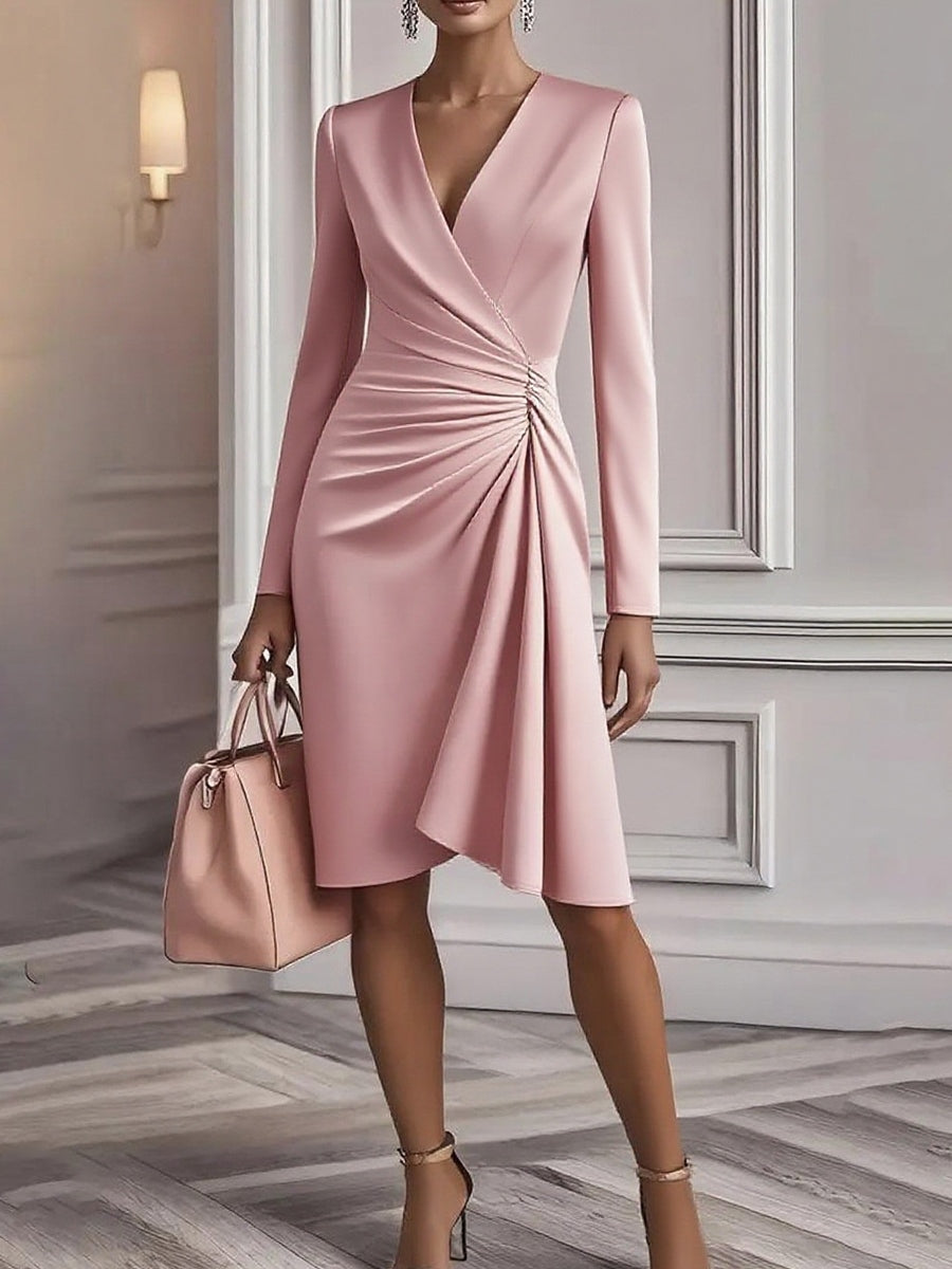 Dámské retro crossover vneck pasu jednofarebné šaty s dlouhým rukávem
