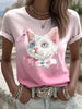 Dámské roztomilé kočky a diamantové stuhy rakoviny prsu téma příležitostné kolo krku krátký rukáv
