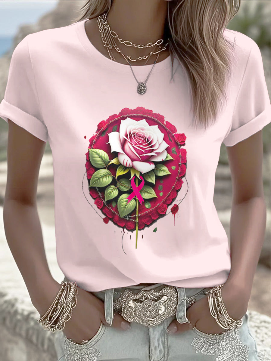 Dámské růžové růžové tisk příležitostné tričko
