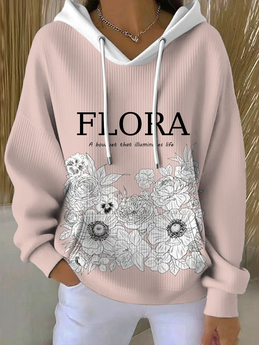 Dámské šedé růžové květinové mikina s kapucnou