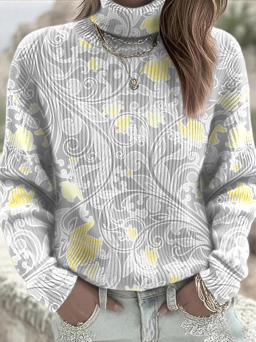 Dámské šedé tradiční květinový svetr