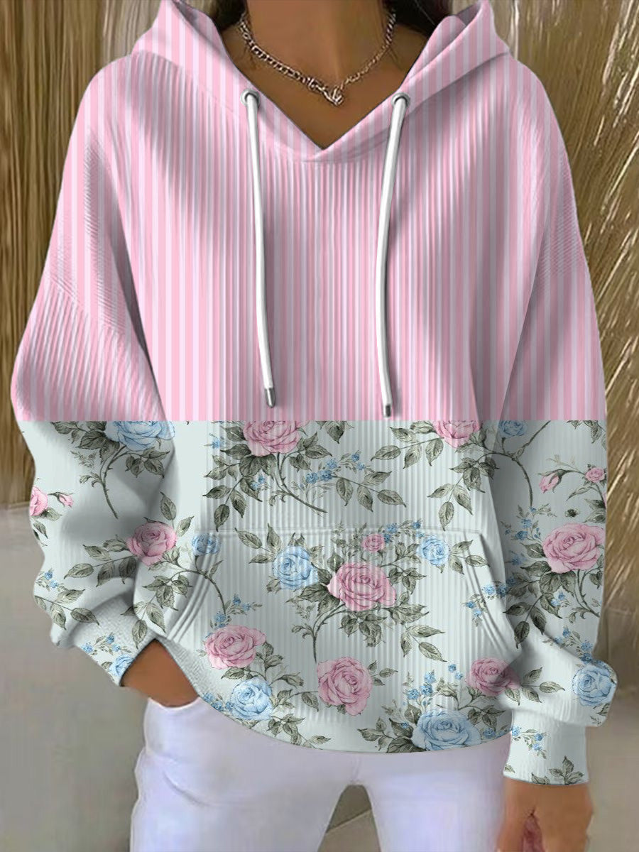 Dámské sladké růžovékvětinová dvoutónová mikina