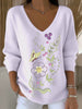 Dámské světlé fialové elegantní květinové vyšívání svetr v krku