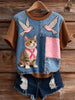 Dámské umělecké zvířecí tisk pohodlné pletené krátké rukávy top