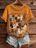Dámské umělecké zvířecí tisk pohodlné pletené krátké rukávy top