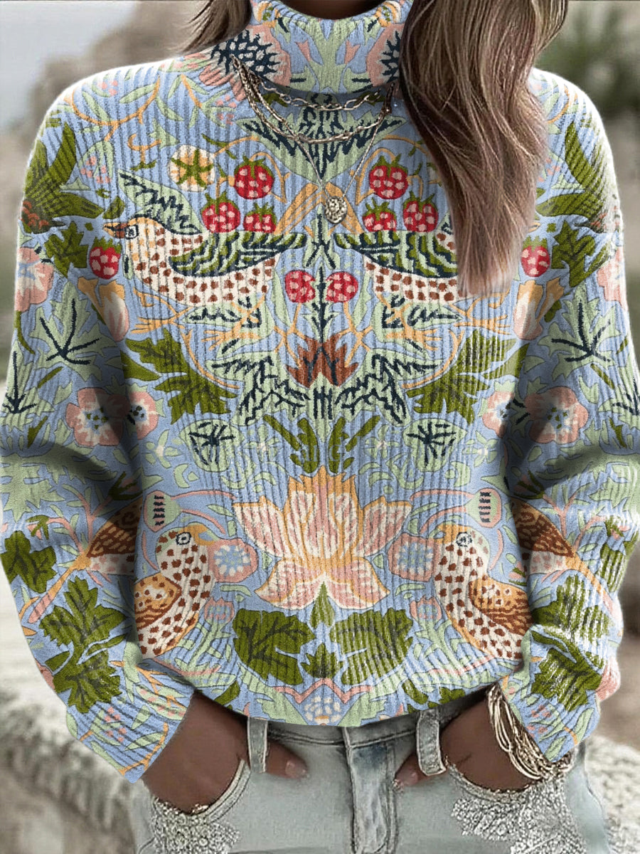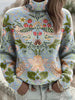 Dámské vintage etnické symetrické květinové vysokého krku svetr