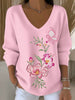 Dámské vintage květinová stuha umění v-neck top