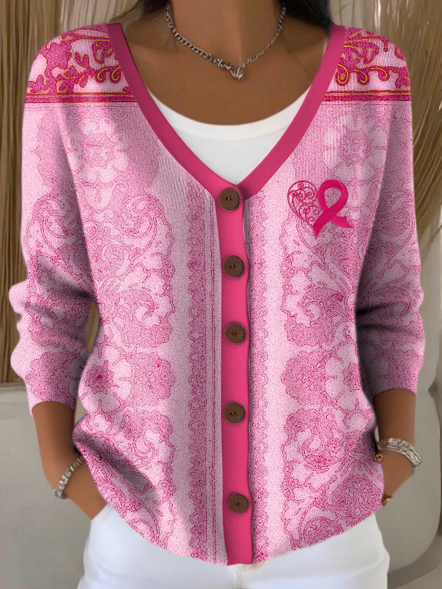 Dámské vintage růžové květinové v-neck pletené vesty