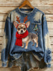 Dámské vintage umění zvířecí tisk pohodlí pletené top