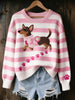 Dámské vintage umění zvířecí tisk útulný pletený svetr