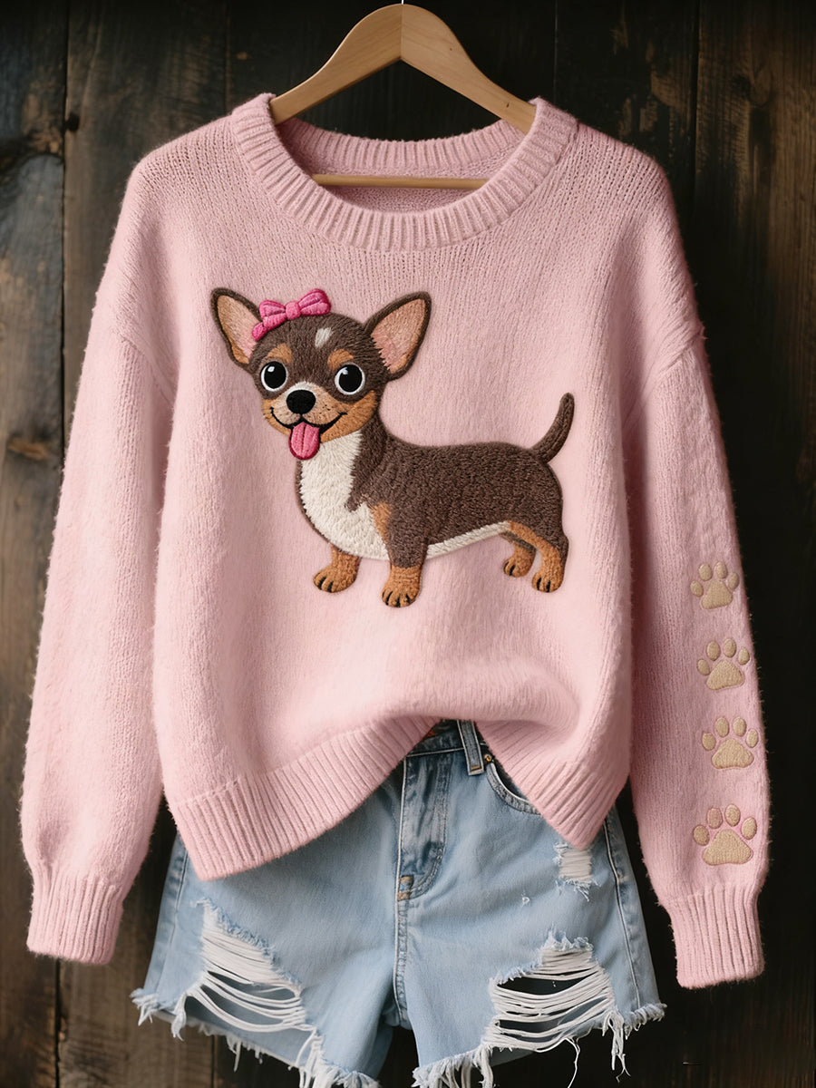 Dámské vintage umění zvířecí tisk útulný pletený svetr