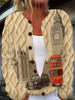 Dámské vintage vánoční umění tisk útulný svetr bunda