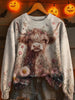 Highland cow print loose long sleeve sweatshirt with garland