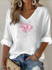 Lady's white ribbon v-neck t-shirt s dlouhým rukávem