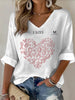 Lady's white v-neck long-sleeved t-shirt