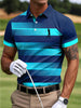 Pánské golfové polo tričko s potiskem inspirovaným vintage stylem a pruhy v odstupňovaných barvách.