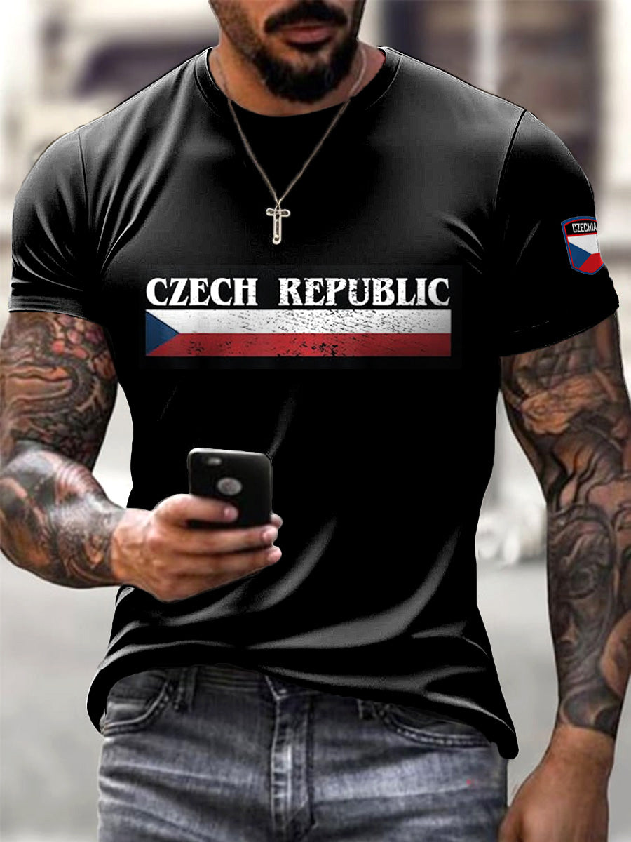 Minimalistická trička s černou českou vlajkou pro muže