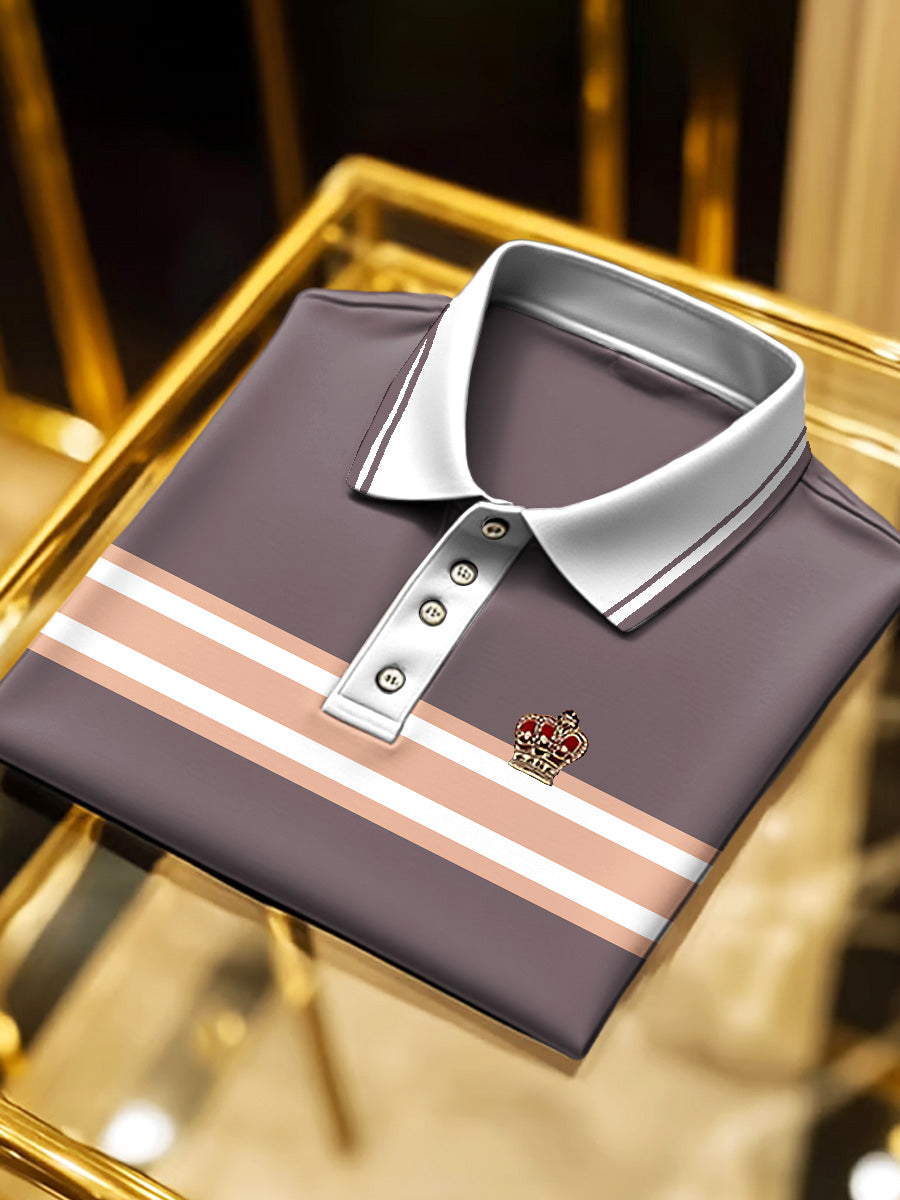 Mužské světlé fialové a hnědé podnikatelské pruhované polové košile