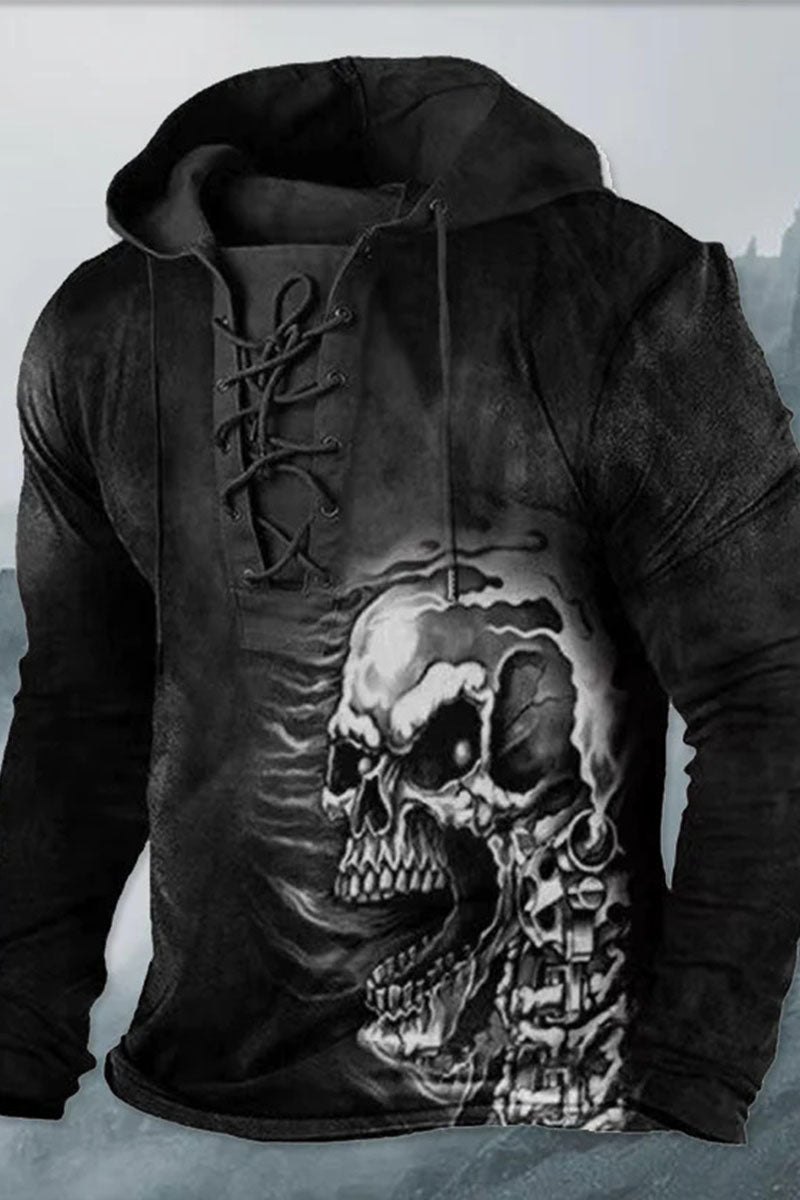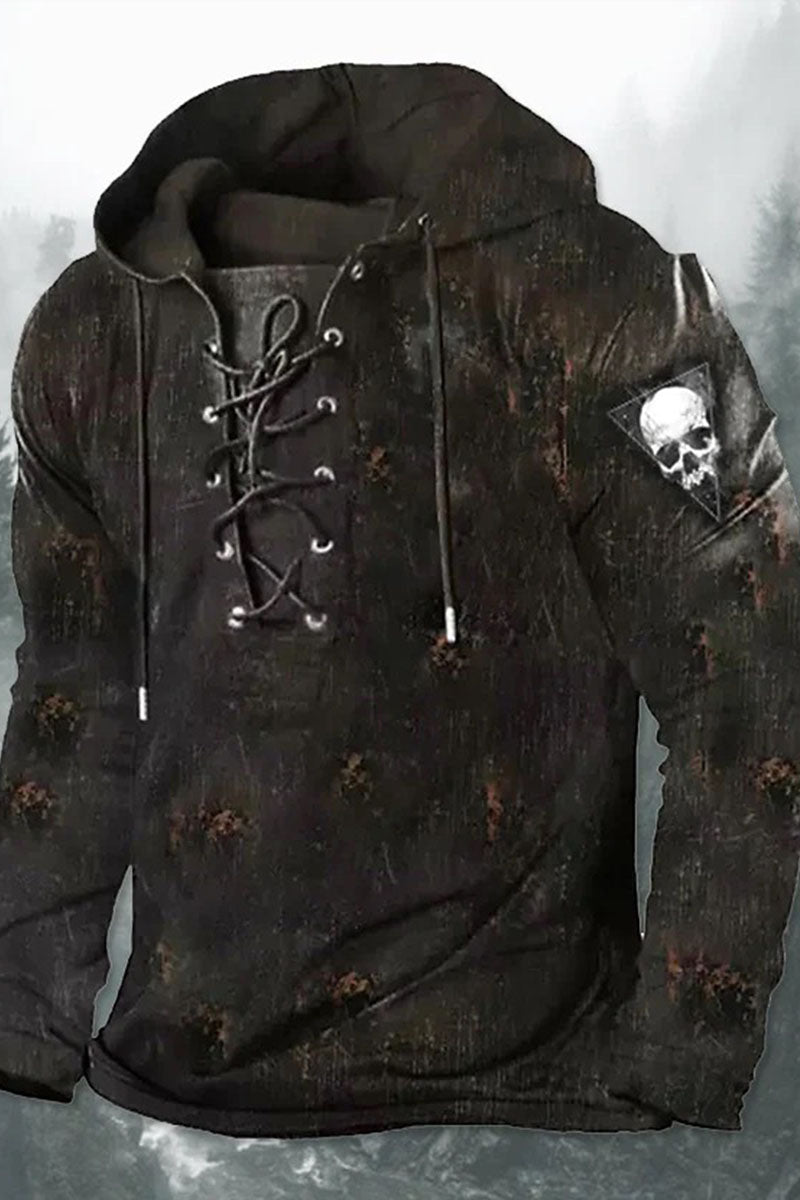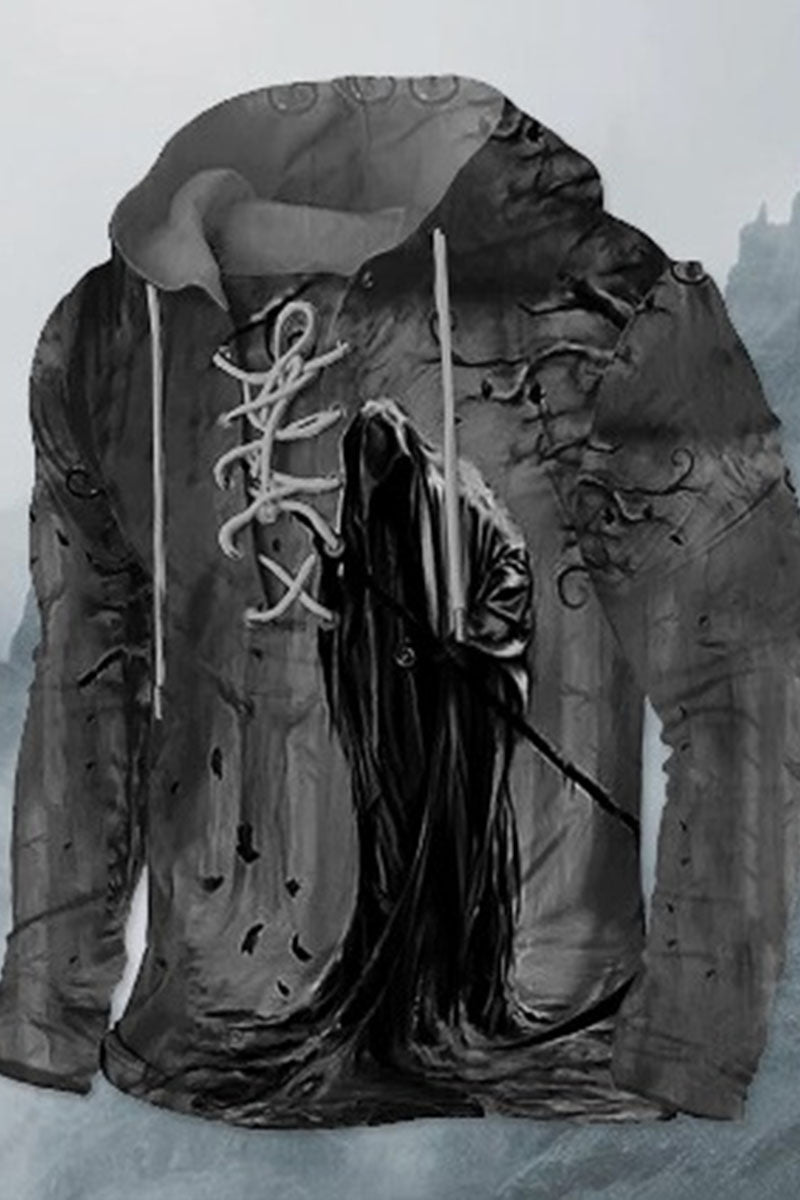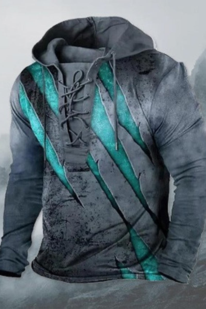 Pánské příležitostné retro tištěné strappy kabát s kapucinou mikina