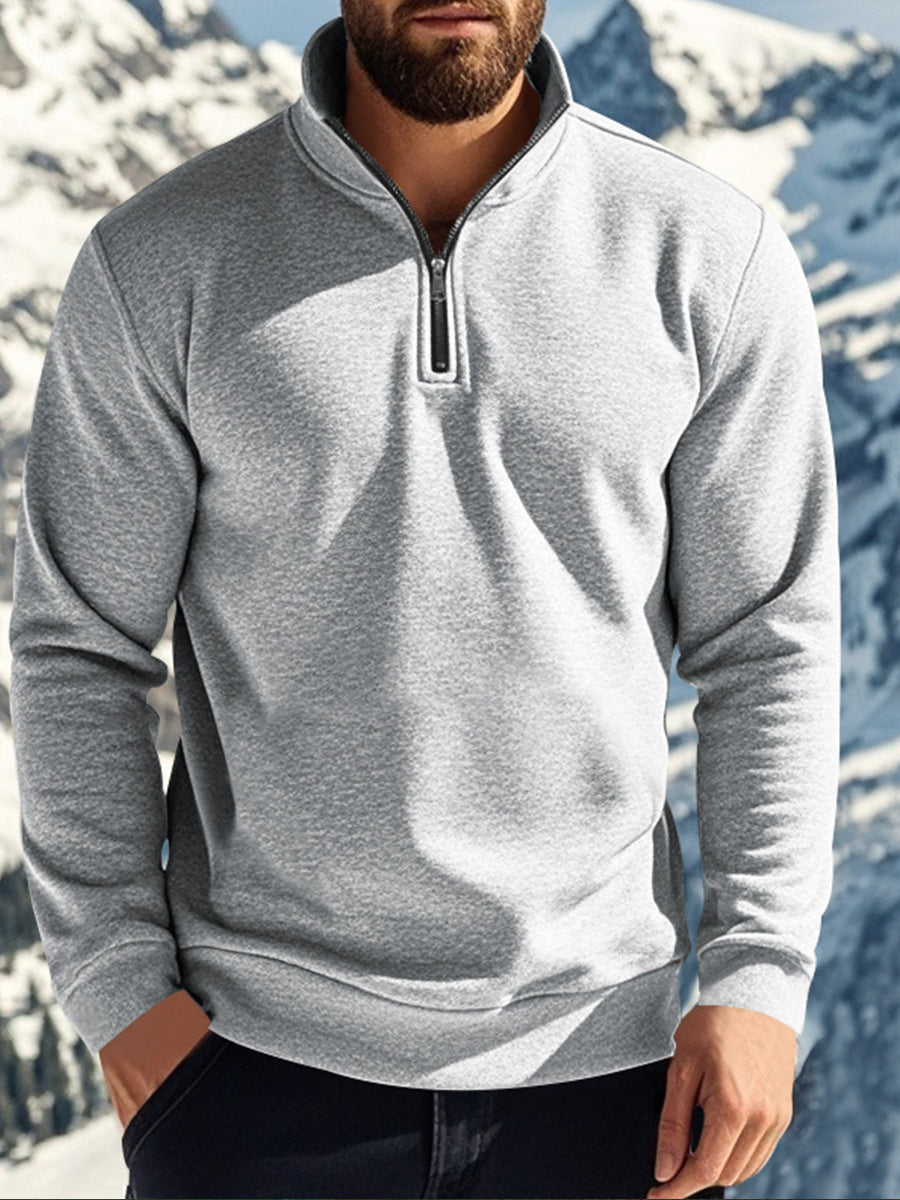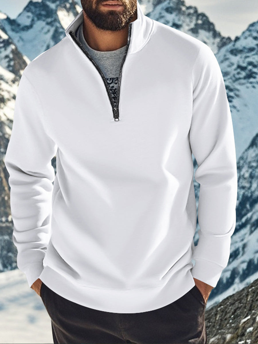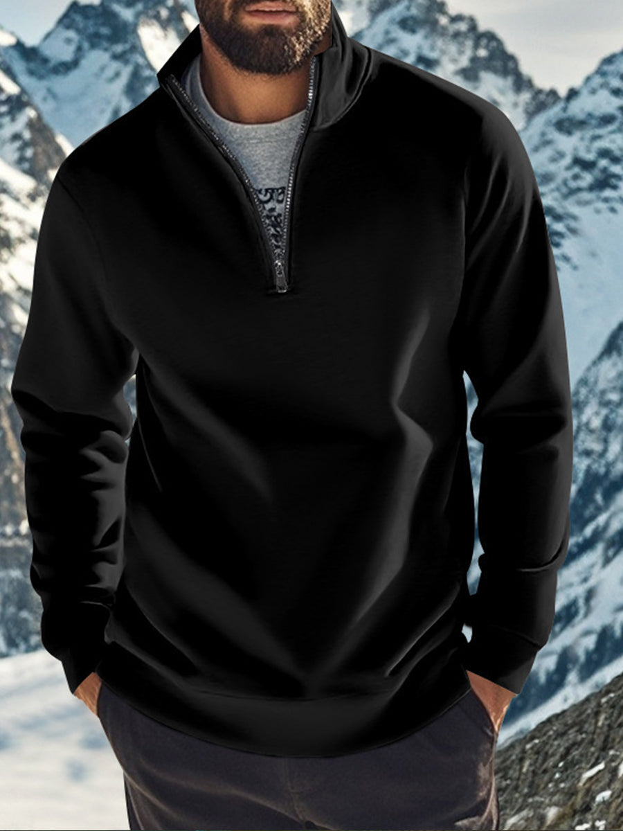 Pánské retro obchodní styl zips stojan golier plyšové mikina