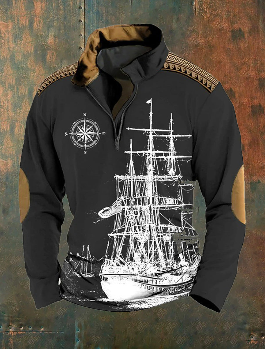 Pánské retro západní art print casual top