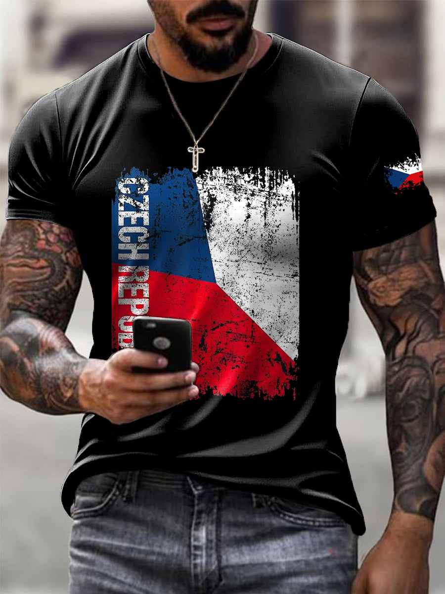 Pánské vintage vlajka tisk příležitostné tričko