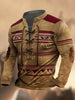 Vintage západní umění tisk country styl vneck henley s dlouhým rukávem košile