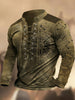 Vintage západní umění tisk country styl vneck henley s dlouhým rukávem košile