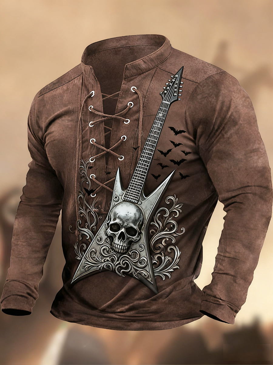Vintage západní umění tisk country styl vneck henley s dlouhým rukávem košile