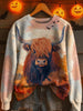 Vysočina kráva vytištěné volné dlouhý rukáv mikina pod javorovými listy