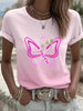 Women's fashionable european pink t-shirt unique butterfly and breast cancer prevention ribbon pattern personalized daily clothes