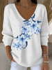 Ženský temperament modrý velký květ vyšívaný čistý bílý v krku svetr