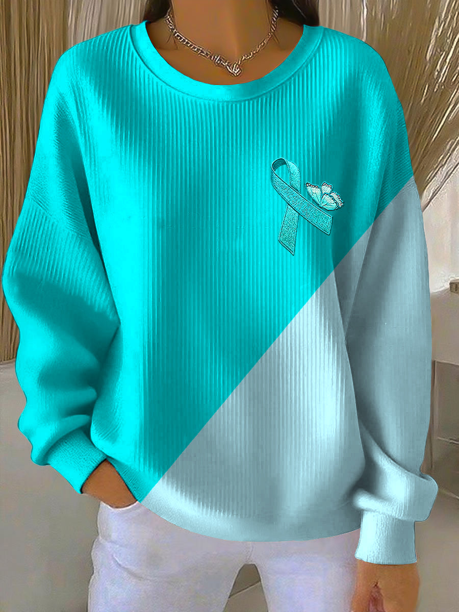 Ženy ovariální rakovina stuha příležitostné posádka krku pulóver