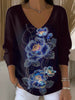 Ženy vintage romantické květinové umění vneck top